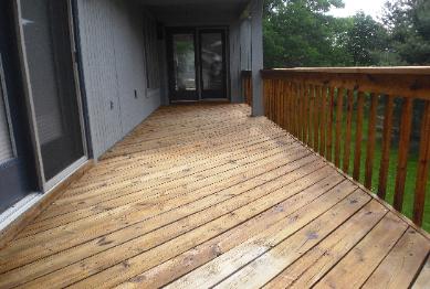 When it's time to clean your deck and apply a stain, hiring a professional can really make a difference. Do you have an old deck stain that is peeling and blotchy looking? If so, it needs to be stripped first. We use a biodegradable product that won't hurt your plants and can get the job done. After the old coating has been removed we then apply citric acid which brightens the deck but more importantly, pH balances the wood so it accepts the stain. Care must be taken when pressure washing decks. To much pressure damages the wood and will prevent the stain from penetrating. We use safe chemicals to clean your deck and use a low pressure rinse to ensure no damage to the wood fibers.